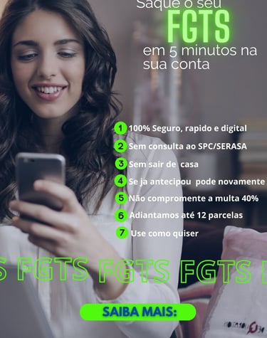 Facilitamos seu acesso ao saque aniversario FGTS(Fundo de Garantia do Tempo de Serviço) com conforto e segurança.